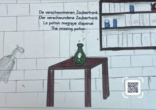 Afterwards, the works were printed as physical booklets by EducDesign s.a. (A QR code links to the interactive storyboard version with audio.) The books were then sold for a good cause.